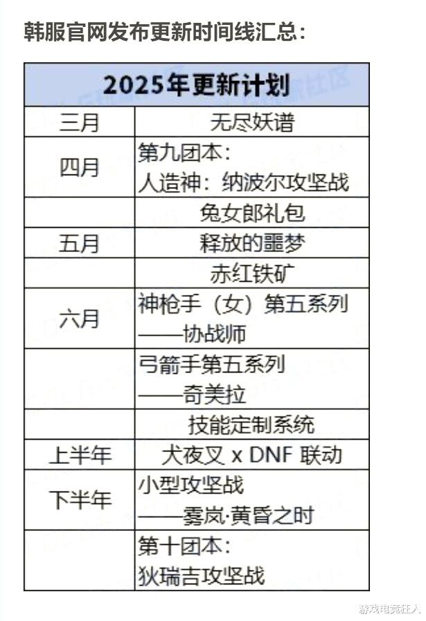 总结:韩服公布 2025 年 3 月至 12 月更新计划,3 月 “无尽妖谱”,4 月 115 级首个团本 “人造神” 等,5 月 “释放的噩梦” 等,6 月新职业及技能定制系统,上半年犬夜叉联动,下半年 115 级第二团本 “狄瑞吉攻坚战”。国服与韩服更新滞后期约 1 周,预计国服会按此计划更新,丰富的更新内容及关键的奖励将影响玩家游戏体验和积极性。